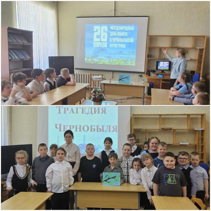 Состоялся информационный час «Чернобыль: судьбы, события, память». Ребята посмотрели тематический видеоролик, в ппоследующем обсуждении вспомнили события катастрофы на Чернобыльской АЭС. Все учащиеся прикрепили зелёный листок на ветку дерева как символ бережное отношение к окружающей среде.