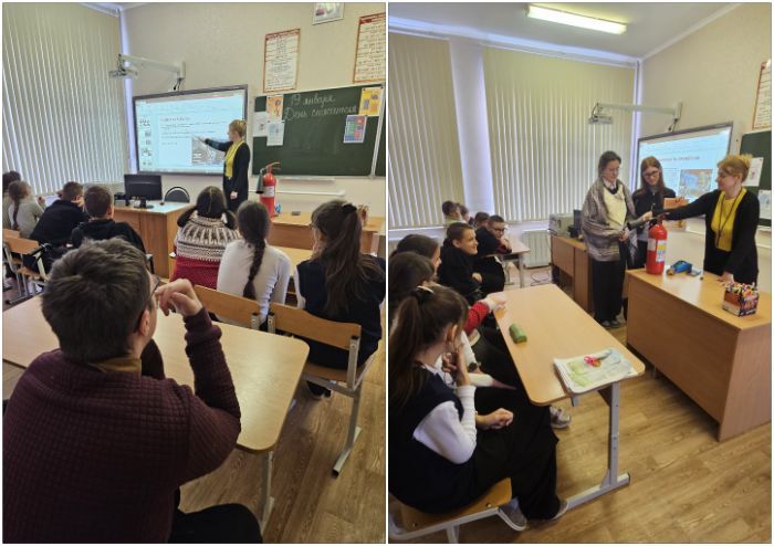 В школе состоялась беседа-презентация «Профессия спасать и помогать». Учащиеся познакомились с учебными заведениями, где учатся на спасателя. Повторили правила обращения с огнетушителем, правила поведения во время пожара, о соблюдении рекомендаций во время гололёда и морозах. В конце беседы ребята записали видеопривет для сотрудников Осиповичского РОЧС, поблагодарили за труд и пожелали, чтобы все дежурства проходили спокойно.