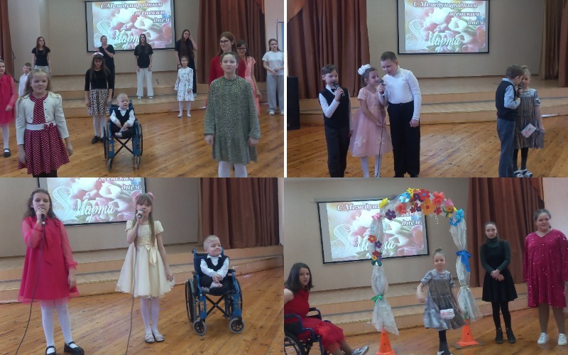 Состоялась концертная программа “С праздником 8 Марта”. Ребята подготовили для учителей, мам и бабушек творческие номера: сценки, песни и танцы. Ведущие праздника, учащиеся 2 класса Бируля Инна и Митинёв Трофим, поздравили учителей, гостей с весенним праздником, пожелали здровья и активных помощников в домашнем хозяйстве. Праздник заканчивался конкурсом дефиле, где девочки продемонстрировали свои нарядные платья и причёски.